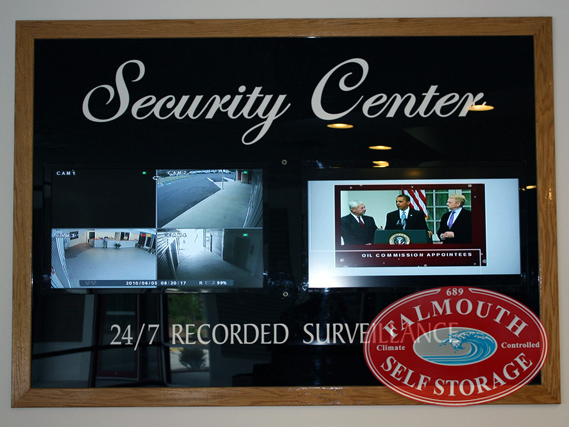 Our Falmouth MA self storage facility provides optimum security and peace-of-mind with full perimeter exterior lighting, interior & exterior video surveillance, keypad access, an intercom throughout the storage facility, full fire sprinkler protection, and more!
