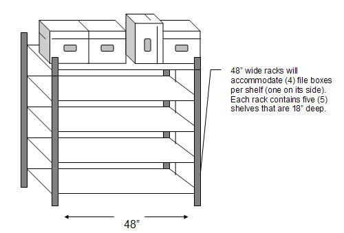 | $400 | $400 | 480 boxes, single top stack. Remaining space can be used for overstock, office furniture, & miscellaneous supplies. | ||